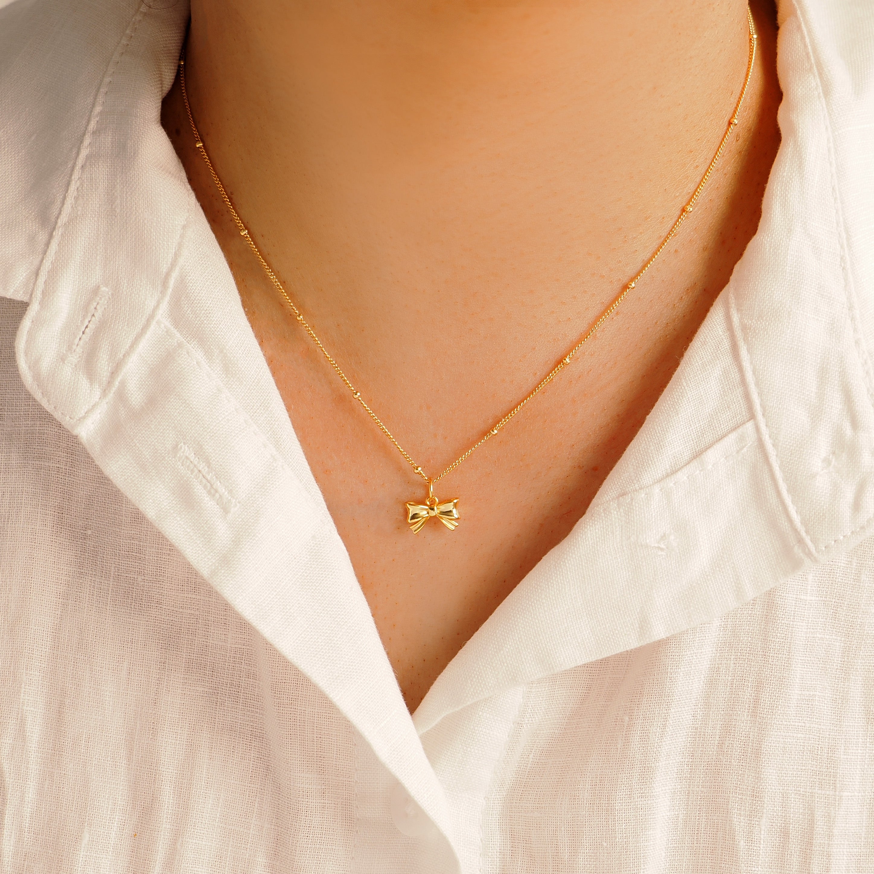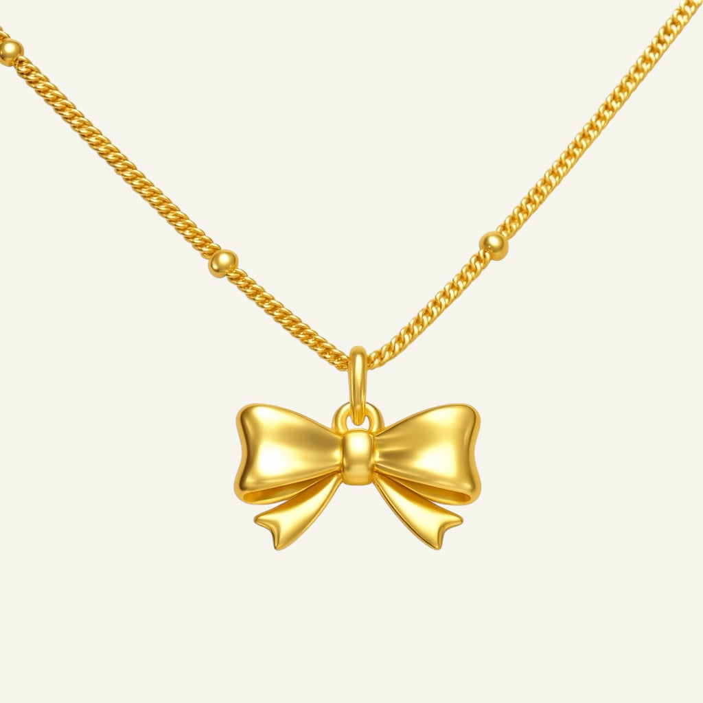 - Features a feminine bow knot pendant for a modern touch